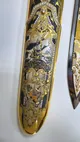 Клинки и ножны этого меча выполнены из драгоценных металлов: никеля, золота высшей пробы (толщина 10 мкм), а также украшены авторской ручной гравировкой. Детали, подчеркнутые техниками чернения, синения и эмали, добавляют мечу неповторимый шарм. Исключительное внимание к деталям не оставит равнодушным даже самого взыскательного заказчика.